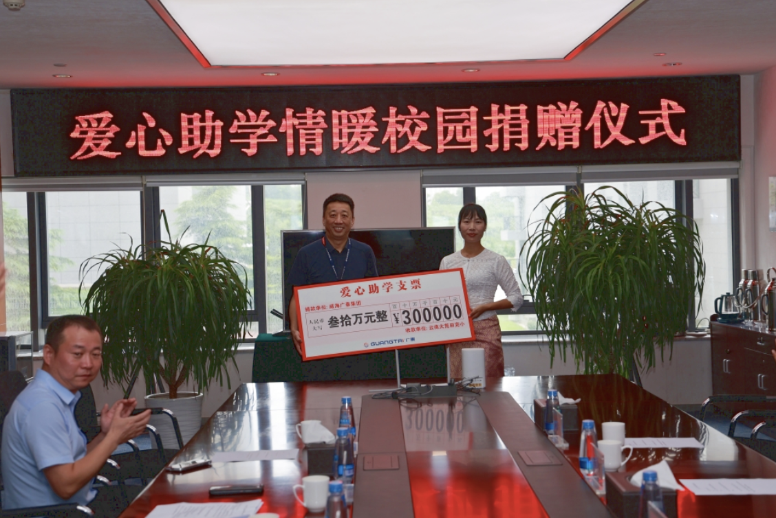 近日,云南大荒田驻村第一书记赵伟率云南大荒田完小校长李梅一行11人来访威海乐竞体育,李文轩董事长一行热情接待并在大厦三楼会议室进行了“爱心助学情暖校园”捐赠仪式。李文轩董事长代表乐竞体育公司向云南大荒田完小捐赠30万元助学基金,并代表全体乐竞体育员工将6月1日捐赠的4000册爱心图书…
